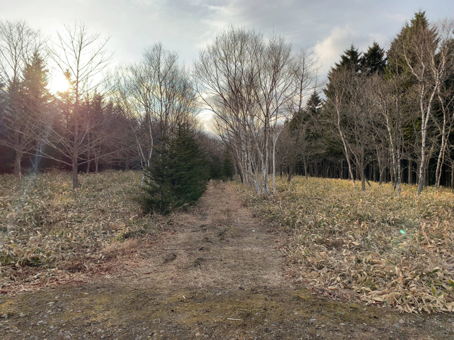 線路跡に沿って針葉樹が列をなして生えているけど、植えたのか?勝手に生えたのか?とりあえず木を避けて歩くことは出来るとしても、この先何十年と経ったら、歩くことさえ出来なくなりそうだな。