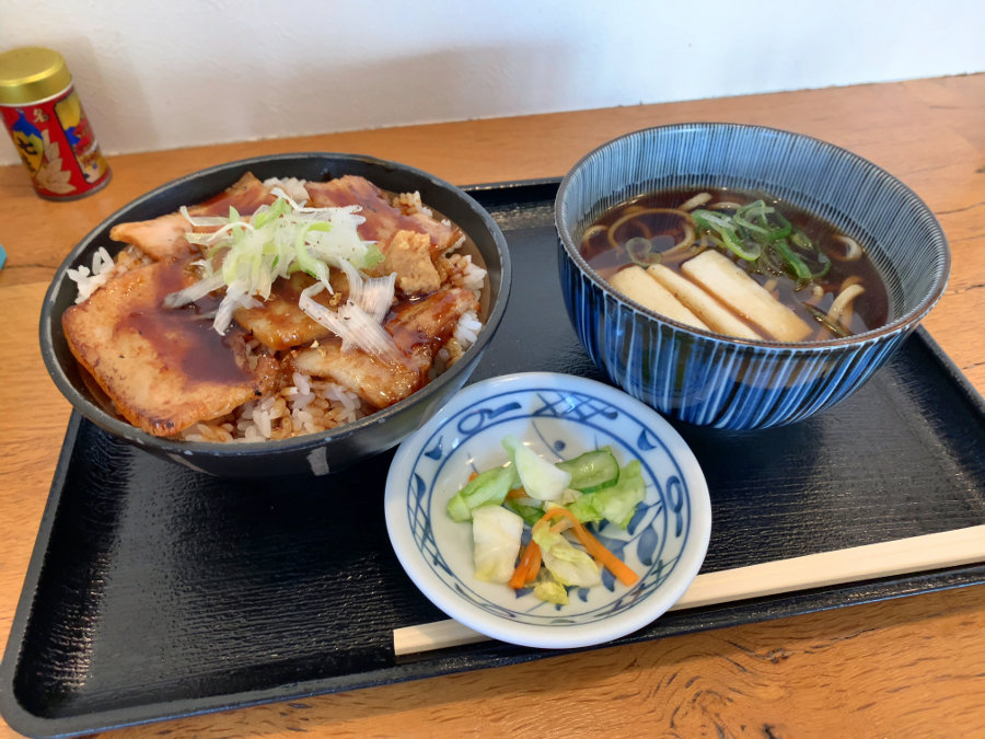 「バラ豚丼とミニ田舎そばセット」(1080円)。