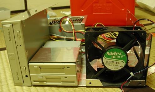 マザーボード以外は全てこちらのフレームに取り付ける。 静音性と廃熱性を向上するため、前面のファンは12cmの大きなサイズのものにした。