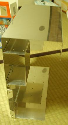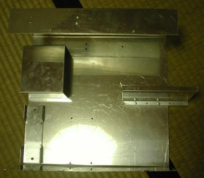 旧型のフレームは作りが悪かったので大幅に作り変えた。アルミ板を曲げ機で曲げたり、切ったりしてフレームを作製。 メンテをしやすいように、マザーボードを付けるフレームとその他のパーツを付けるフレームを分けることにした。