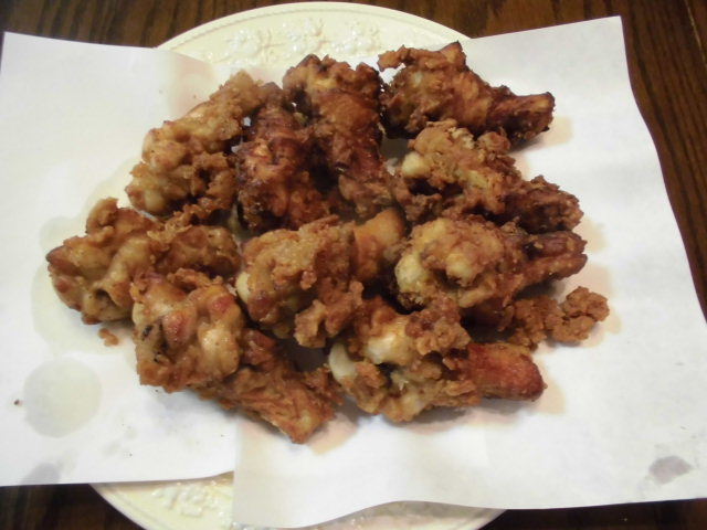 写真以下2枚。この日の夕食の、メイン(main)料理で、韓国風、クリスピーチキン(crispy fried chicken)。一つ、味見で、食べてしまった後の物。食材の鶏肉は、国産(日本産)の、高品質な、鶏肉の、手羽元を使いました。私も、彼女も、韓国風、クリスピーチキン(crispy fried chicken)は、初めて作りましたが、衣がサクサクで、美味しかったです。彼女も、美味しいと言って食べていました。