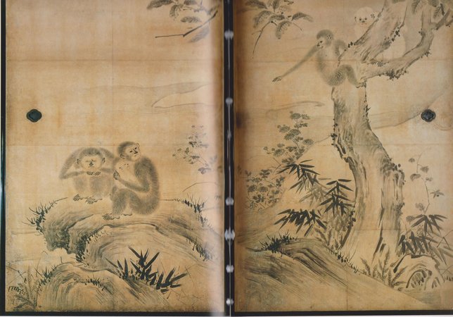 エネルギー有り過ぎの襖絵で飾られた檀那の間の裏側(北側)に回ると、虎と猿のほのぼのとした松栄の絵に出くわす。永徳の絵に比べて目に優しく親しみを覚えるが、インパクトの大きさでは永徳に及ばない。