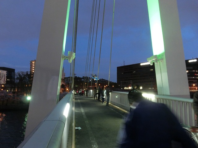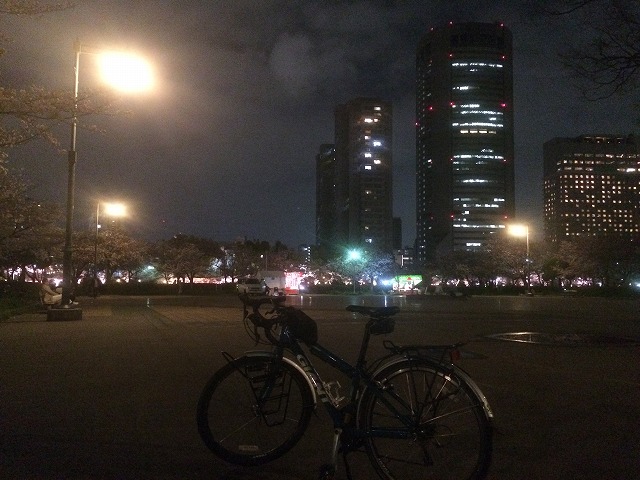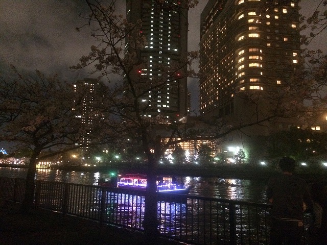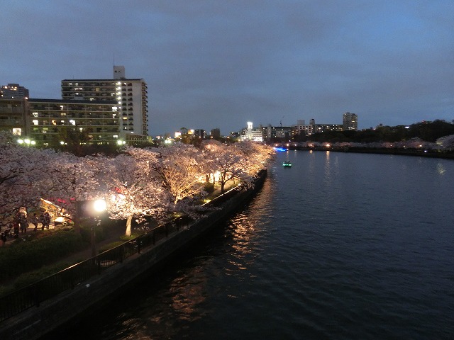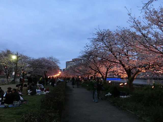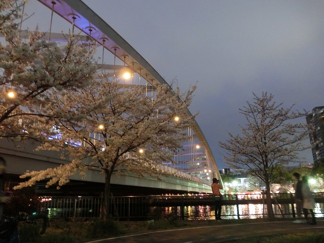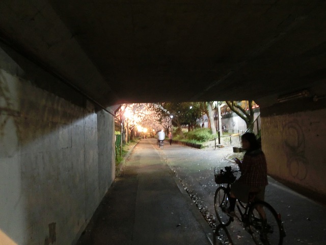 大川沿いの桜並木はこのようにライトアップされていますので、夜桜を自転車で楽しむにも何の問題も無いのです。