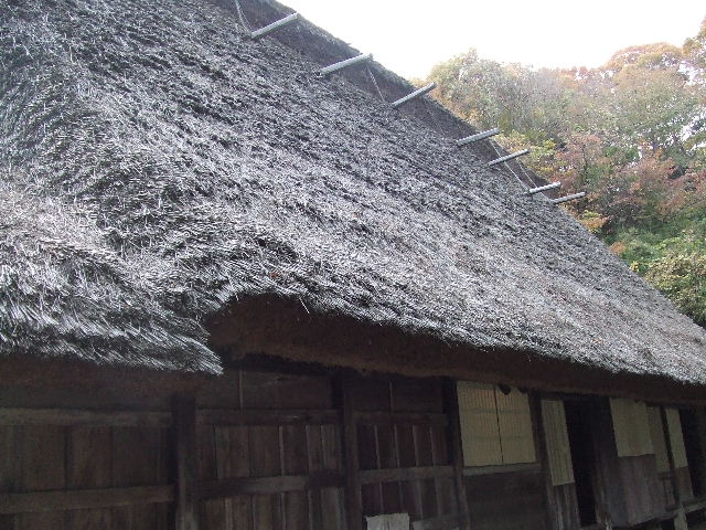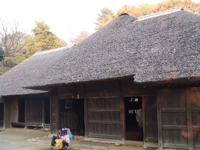 写真以下3枚(以下、1枚目の写真(家の外観の写真)は、何故か、IEだと見られないようなので、Firefoxで、ご覧下さい)。この家は、日本民家園(nihonminkaen)の地元、神奈川(kanagawa)県(東京圏の南部を占める県)の農村から移築されてきた農民の家です。1687年に建てられた農民の家です。家に比べて、とても大きな屋根が特徴です。韓国の方達は、日本の農民の家の屋根は、大きいと思うかもしれませんが、この形態の農民の家の屋根は、特に大きいと感じられるのでは無いでしょうか?