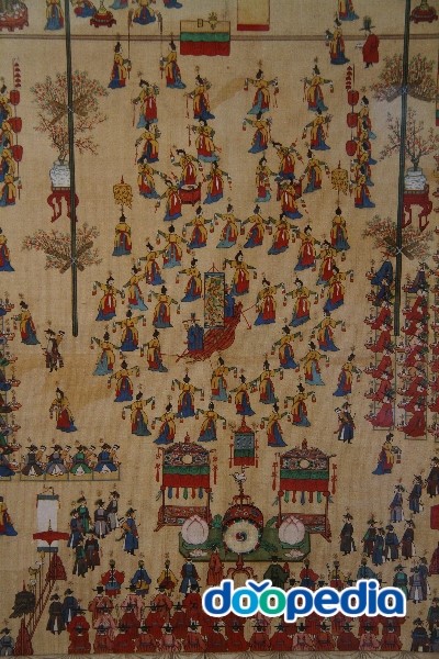 正祖의 어머니 惠慶宮 洪氏의 회갑연으로  여성 무용수들의 공연이 펼쳐졌다