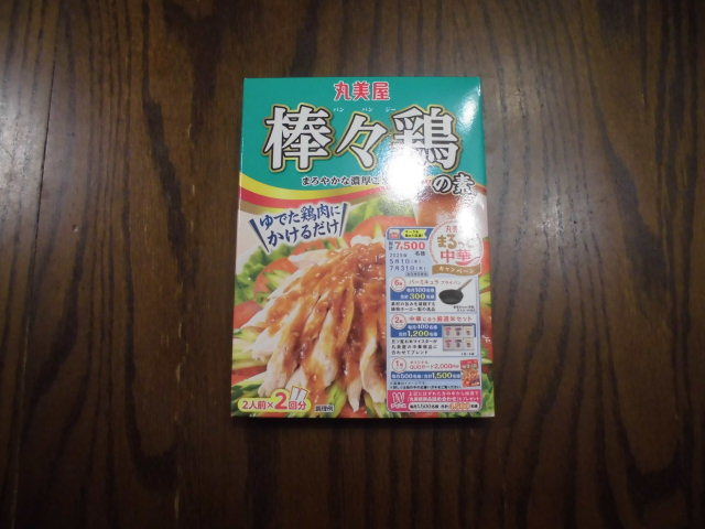 この、市販の、棒棒鶏(bang bang chicken)の素(もと)(ソース(sauce))を使って、棒棒鶏(bang bang chicken)を作り(鶏肉は、国産(日本産)の鶏肉を使いました)、野菜サラダ(salad)の上に載せて食べました。