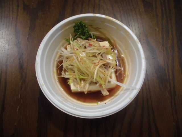 写真以下3枚。この日の夕食の、メイン(main)料理。この日、私が、仕事の取引先を訪れたついでに、取引先の周辺の、弁当(bento)(簡易な食事)・総菜(おかず)店で買って来た物。何れも、2人で分けて食べました。食べる際に、温め直して食べた方が美味しい物に関しては、温め直して食べました。