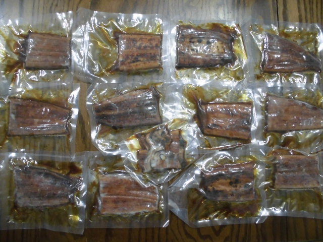 들여온, 카고시마(kagoshima) 현(큐슈(kyusyu)(일본의 남부)의 남부에 위치하는 현.뱀장어의 주요한 산지의 하나가 되고 있다) 출산의, 뱀장어.11월 후반에 도착한 것.소스(tare)(sauce), 산초 첨부.냉동 보존해, 이미, 그녀와 우리 집에서, 반 정도, 만중(장어 덮밥)으로 해 먹고 있습니다.