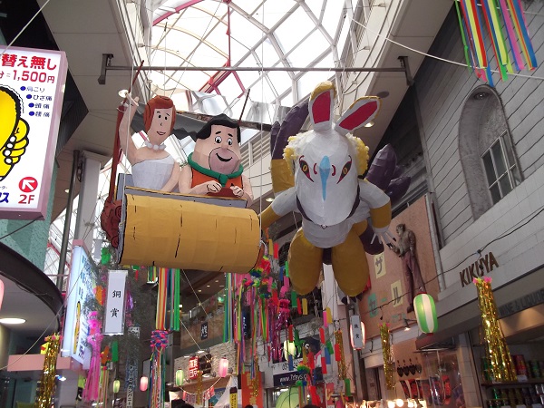 張りぼてだけじゃなくて、商店街のお店でもTシャツを売ってたり