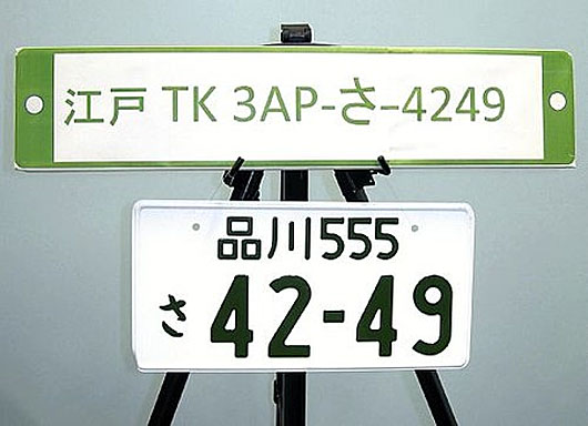 현재는 옆 33센치, 세로 16·5센치이지만, 새로운 플레이트는 옆 52센치, 세로 11센치 정도를 상정하고 있다.알파벳을 사용하는 것이나 도안의 표시를 인정하는 일도 검토한다.