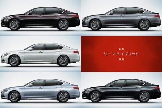 NISSAN는 25일, 플래그쉽 모델이 되는 하이브리드 세단 「CIMA」를 5월 21일에 발매한다고 발표했다.보디 사이즈는 전체 길이 5120 mm× 전체 폭 1845 mm× 전체 높이 1510 mm, 휠 베이스 3050 mm로, 가격은 735만엔-840만엔.판매 목표 대수는 1000대/년.