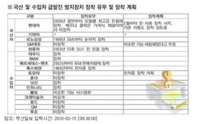 Renault는 벌써1998年부터 장착을 하고 있었는데2008年에 장착을 서두르는 휸다이는?
