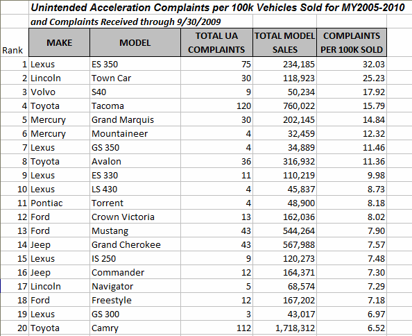 美 急発推事故, 豊田が 41% (コンシュ....... 프리스탈 2012-05-10 14129 0