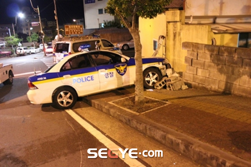済州島西帰浦警察署によると 17日午後 10時15分頃飲酒取り締まりをした済州中東地球台所属金某(41) 傾斜がルノー三星自動車の SM3 パトロールカーに始動させると轟音を出してこれから駆け付けた. 2009年式 SM3人パトロールカーは飲酒取り締まりで逃げる車を追撃するために始動させて変速器を Dに移すやいなや車が突進したことと伝わった.