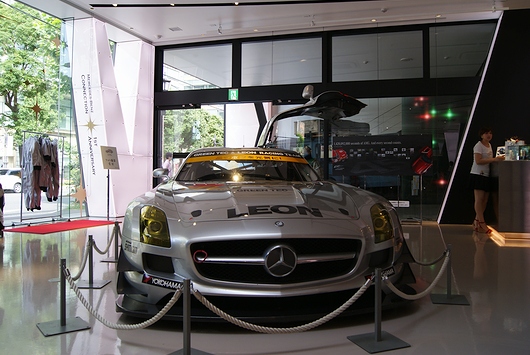 Mercedes-Benz Connection의 옥내에서 전시되고 있던 「GREEN TEC & LEON SLS Mercedes-Benz SLS AMG GT3」.