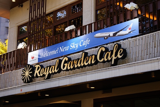 기간 한정으로 Royal Garden Cafe 아오야마점이 「JAL Welcome! New Sky Cafe」가 되어 있었습니다.빈번히 합작을 하고 있고, 이전에는 「Porsche Cafe Aoyama」로도 되어 있던 카페입니다.