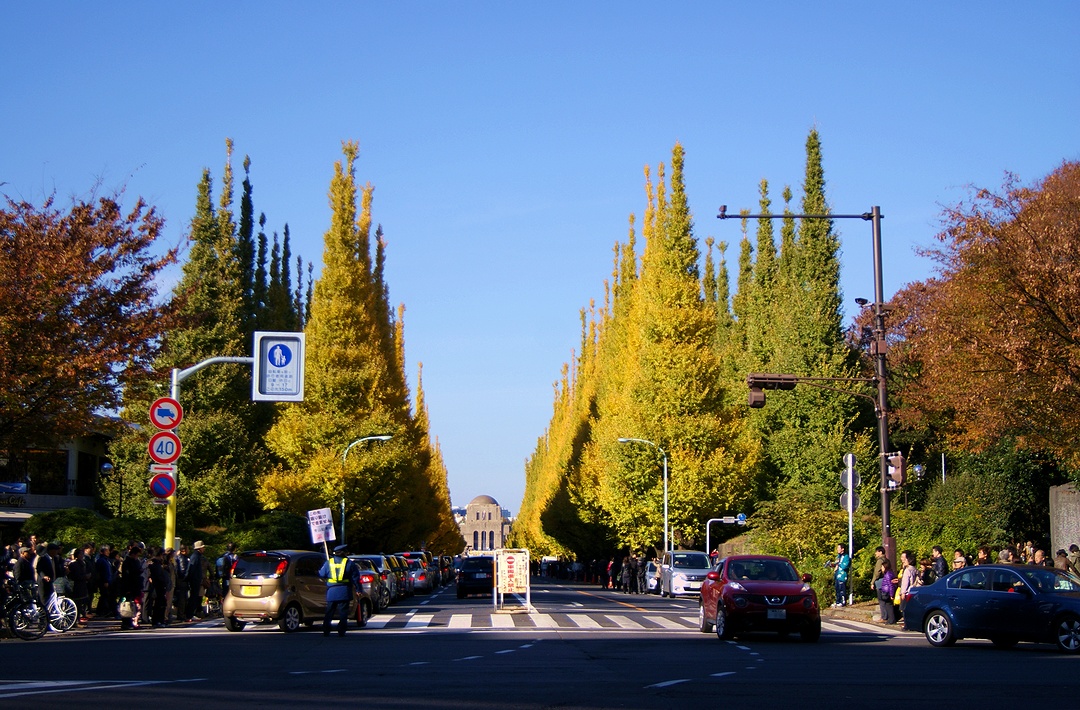 그런데, 걸어 메이지 신궁 외원나비 가로수에.아직 녹색의 잎도 많습니다만, 황엽이 진행되고 있습니다.