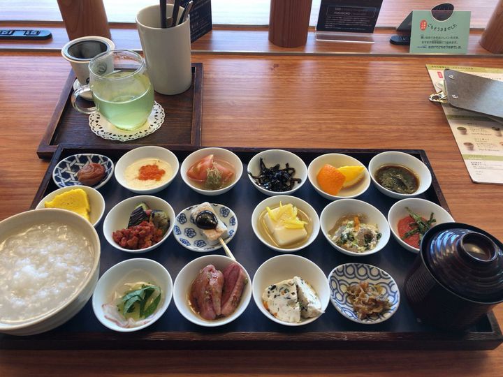色んな種類の小鉢をちょっとずつ食べられるのがとても楽しく、また味もとっても美味しかったです。お粥はおかわりできるので少ないように見えますがお腹いっぱいになります。