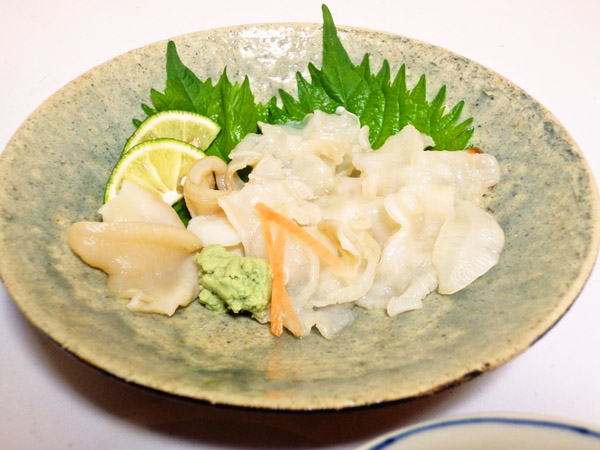 みる貝の刺身。かなり貝の匂いが強いから好き嫌いはあるかも。