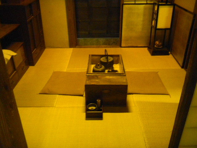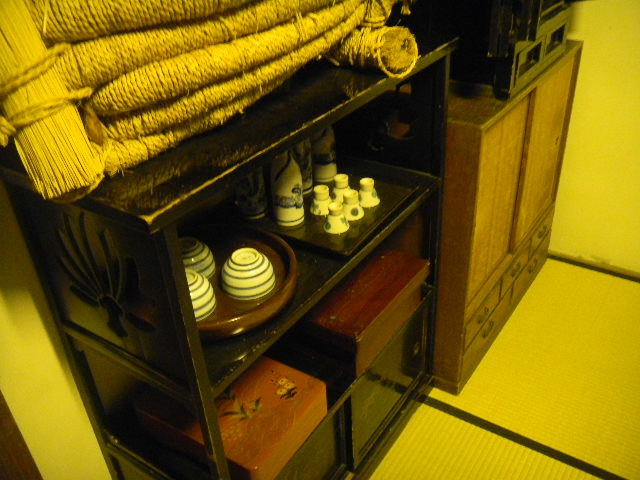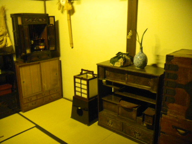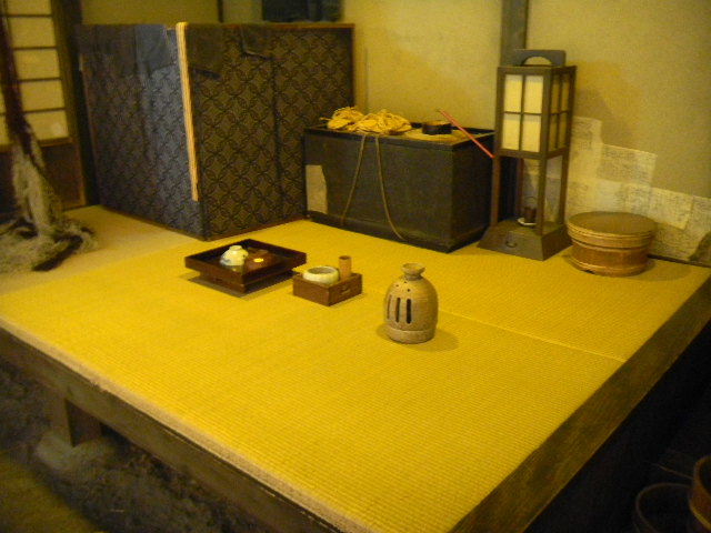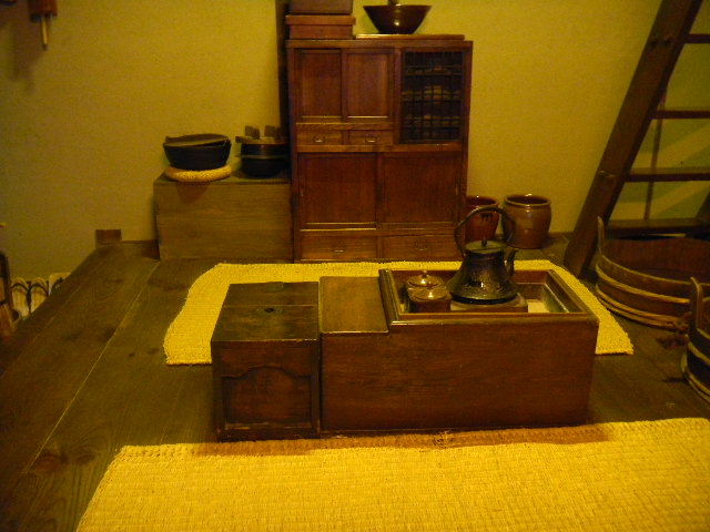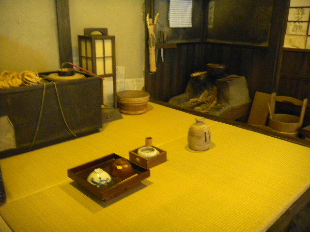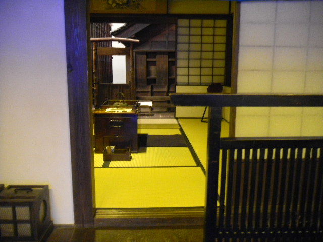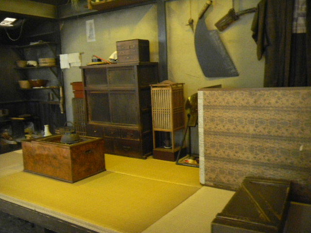 建築材料や家具の材料等の木材を切る職人と、その妻の、二人暮らしの、長屋(nagaya)の部屋を再現した物です。一人暮らし用の、長屋(nagaya)の部屋よりも、若干、広くなっています。