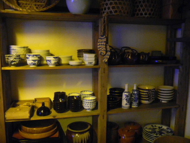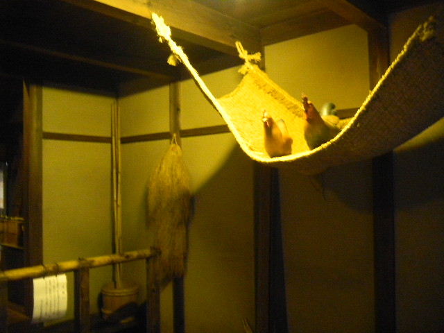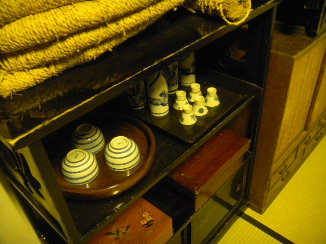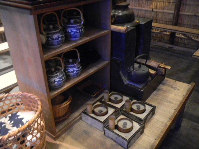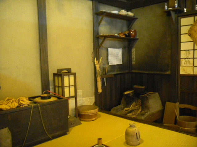 写真以下3枚。船宿(funayado)に勤めている、船頭(船を操作する人)の、一人暮らしの、長屋(nagaya)の部屋を再現した物です。現代の基準で見れば、とても狭いですが、それでも、快適に暮らす工夫はなされていた様です。