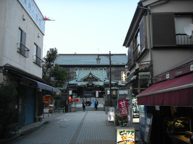 深川(fukagawa)不動尊(fudouson)の、参道(お参りする為の道。小規模な、商店街となっている)から見た、深川(fukagawa)不動尊(fudouson)(門前仲町(monzennakacho)駅近くにある、1703年創建の、仏教の寺)。関東大震災(1923年に東京areaを襲った巨大地震。東京等が、非常に大きな被害を受けた)、第二次世界大戦末期の、アメリカ軍の空襲と、2度に渡って、大きな被害を受けた東京は、現代的な都市ですが、そこかしこに(所々に)、伝統的な物が残っています。