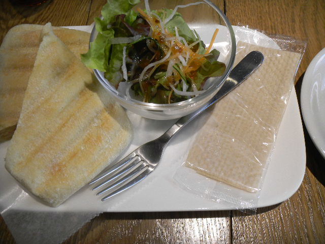 この時、私が、このカフェ(cafe)で食べた、おやつ。ハム(ham)とチーズ(cheese)の、パニーニ(panini)。二人共、既に、昼食は、済ませていたのですが、私は、小腹が減っていたので(少し、お腹が空いていたので)、おやつとして、軽食を食べました。