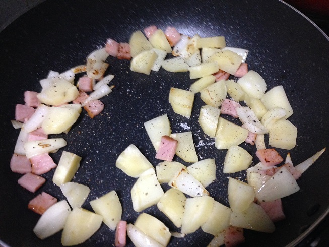 茹でたじゃがいもを入れたら、塩胡椒して、最後に無塩バターを入れて・・・