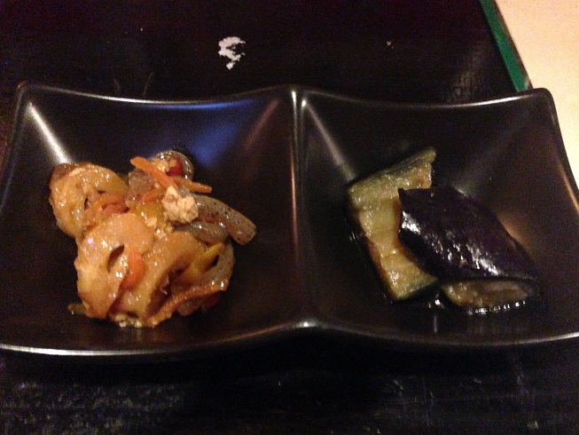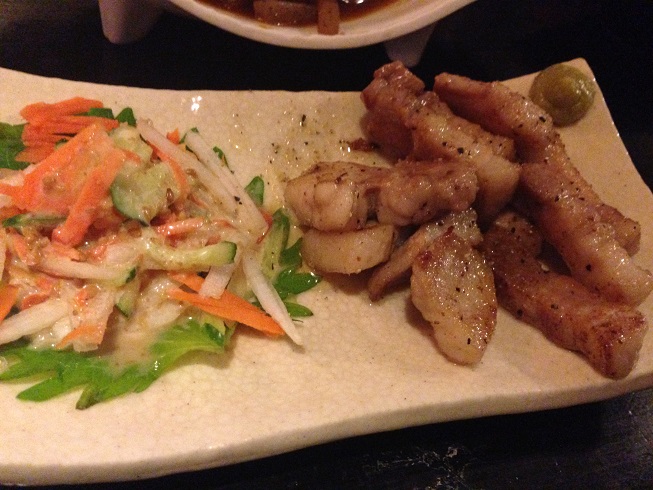 黒豚のサイコロ焼き、お好みでわさびをつけて。