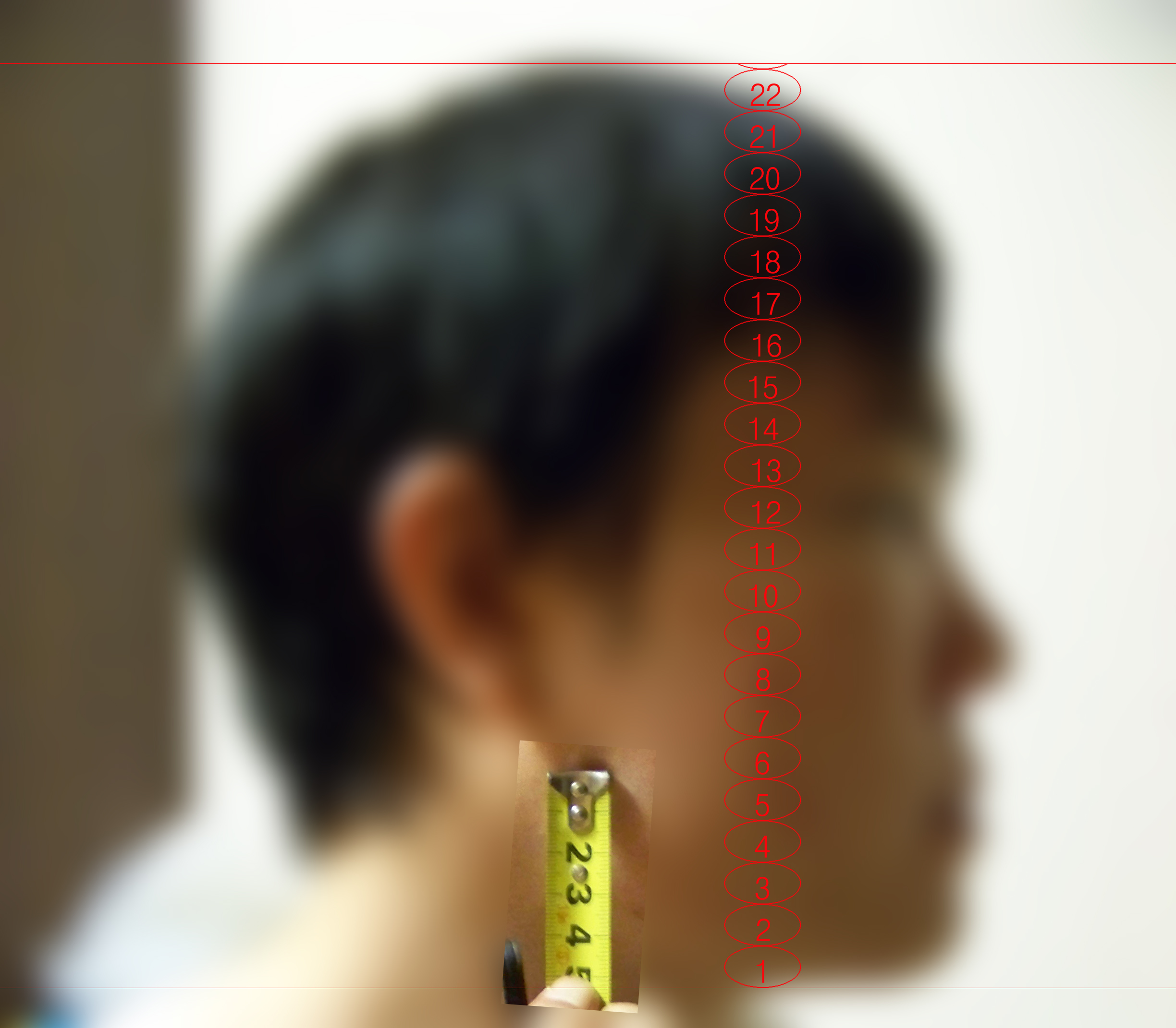 자로 재어 보니, 나의 머리 길이는 겨우 22.2cm