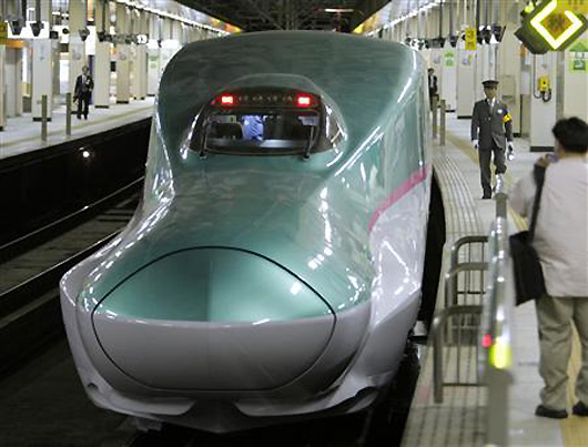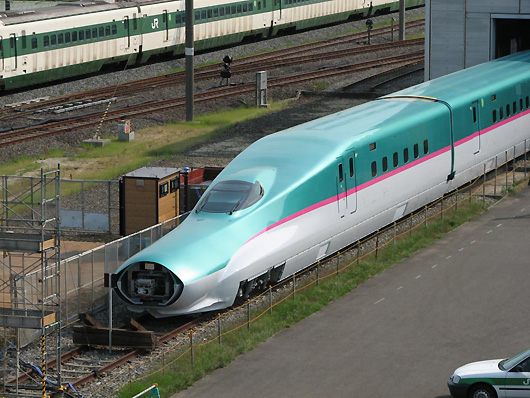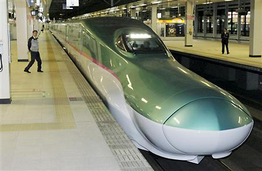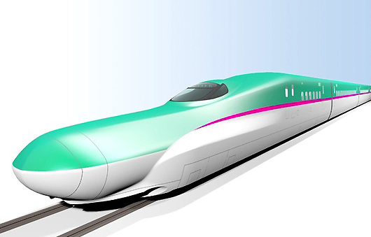 12年度末には宇都宮−盛岡でフランスの高速列車TGVと並ぶ320キロで運転し、東京−新青森を最速3時間5分で結ぶ。空気抵抗を減らす先頭車両の長い傾斜や、揺れを吸収したり曲線部分で車体を傾けて乗り心地をよくしたりする設計が特徴で、最終的には59編成が投入される計画だ。