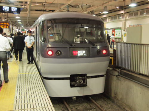 ↑신쥬쿠에 도착하면 신형 차량이 출발 대기를 하고 있었습니다.