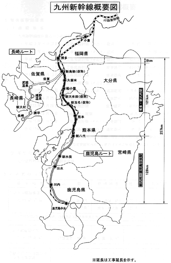 2011년 봄의 전선 개업을 향해서 큐슈 신간선은 22일, 선로 부설 공사의 마무리 작업이 JR쿠마모토역 구내에서 완료했다.토카이도・산요신칸센과 이미 영업 운전중의 큐슈 신간선 신야시로(쿠마모토현)-카고시마 츄우오역간과 합하면,도쿄에서 카고시마까지 약 1300킬로가 1개의 레일로 연결되었다.