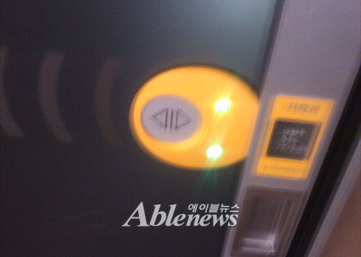 그러나 사진의 중앙의 스윗치를 누를 때까지의 과정은 휠체어 장애자에게 결코 용이하지 않다.