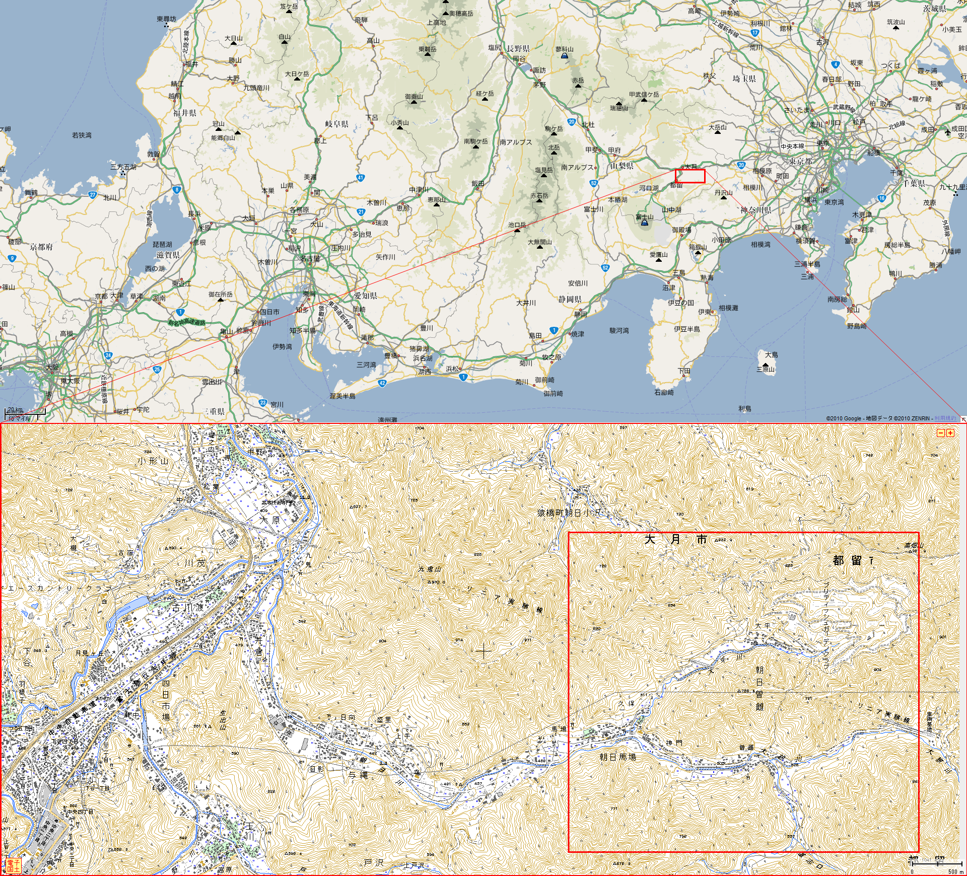 山梨県都留市の東部ですね。
