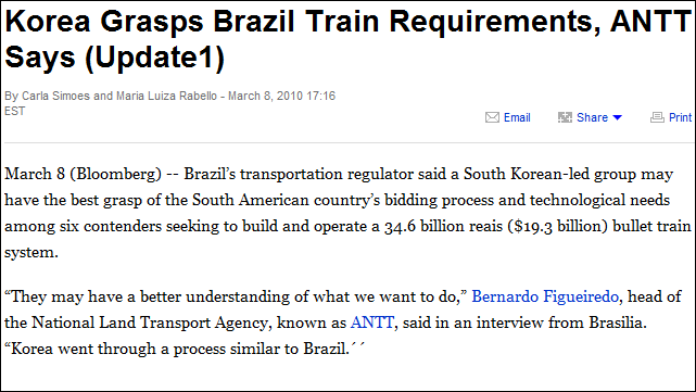 ブラジル高速鉄道、韓国が最有力 pokebe3 2010-07-18 3879 0