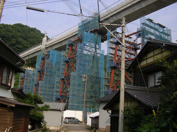 木造家屋とコンクリート新橋梁とのギャップを感じます…