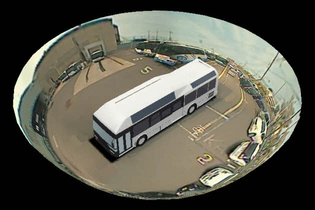 차량 주변 감시 시스템「다각도 비전」는, 다양한 시점으로부터 입체적인 부감 영상을 표시할 수 있는 시스템이다.후지쯔 그룹이 개발을 다루고 있어 2010년 5월에는 토요타 자동차를 위한 옵션으로서 발매가 끝난 상태.이번 소라비를 향해서, 버스용 시스템을 새롭게 개발했다.