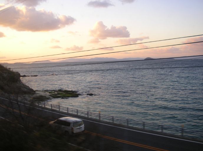 엇갈림 열차의 지연으로 열차가 늦은 적도 있어 이요 키타죠역에 가까워졌을 때에는 저녁이 되어있었습니다 …