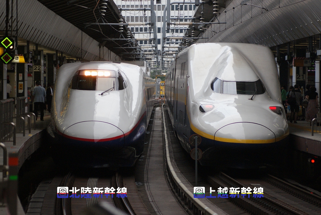【画像:北陸(長野)新幹線E2系「あさま」と上越新幹線E4系「Maxとき」】