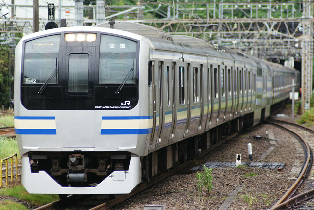 요코스카선 E217계 카나가와-도쿄-치바의 도쿄만을 따라서 달리는 통근 노선.