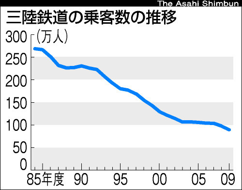 東日本大震災で駅舎や線路が津波で流失した岩手、宮城県内のJR3路線について、従来の鉄道ルートに専用道路を作り、バスを運行させる「バス高速輸送システム」(BRT)で復旧させる案を、JR東日本が検討している
