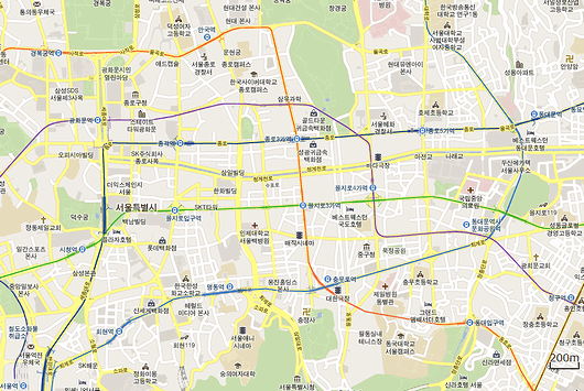 距離感やスケールがわからないという青組もいるかもしれないので、参考までに同じ縮尺のソウル中心部を載せておきます。