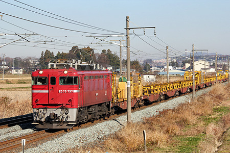치키 5500을 연결한 롱 레일 운반 열차(사진은 동계열의 치키 5700형)