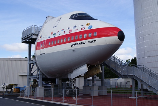 ジャンボジェットの生首です。もちろん本物で、シンガポール航空とノースウエスト航空で使用されていたBoeing 747-200型機です。ただし、塗装はBoeing 747型機の試作1号機を模しています。