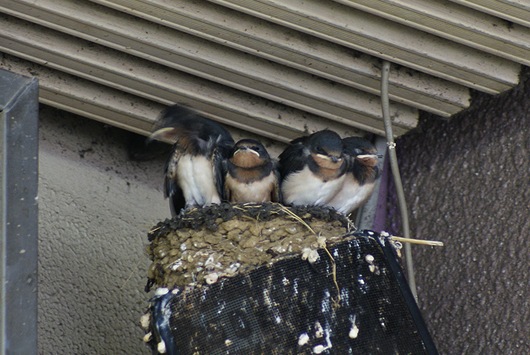 京成成田駅の駅舎でツバメが巣を作っていました。もうすぐ巣立ちそうですね。