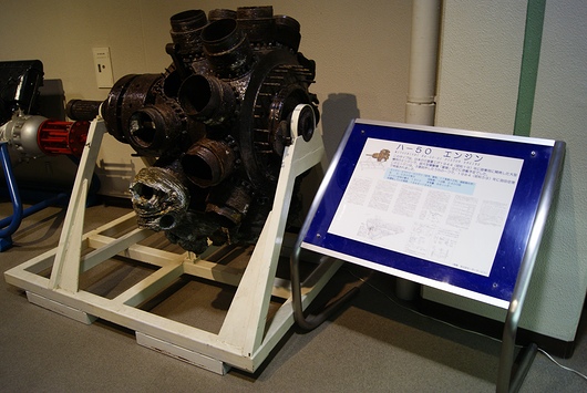 하-50형 엔진.미츠비시중공업이 1944년에 시작한 엔진입니다.당시(로서)는 상당히 강력한 엔진입니다만, 결국 양산되는 일 없이, 하네다 공항 주변의 지중에 묻어 처분되었습니다.그리고, 1984년에 도쿄국제공항(하네다 공항)의 공사중에 발견되었습니다.