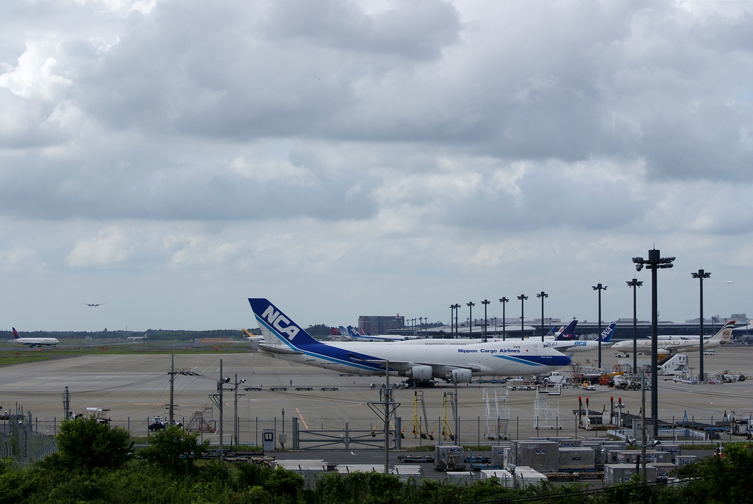 5階にある展望展示室からの眺め。ちょうど左側のA滑走路(4000m滑走路)と右側のB滑走路(2500m滑走路)に同時着陸していますね。展望展示室から直視できるのはA滑走路だけですが、Airbus A340型機やA380型機、Boeing 777型機や747型機の離陸はほぼ確実にA滑走路を使用します。