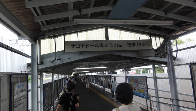 駅の通路には、ナゴヤドームまで1.4kmの文字が・・この駅が名古屋ドームの最寄り駅でもあるんでしょうか。しかし、ドームは見えませんでしたが・・・