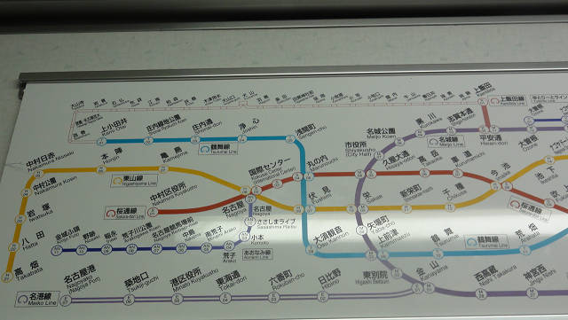 地下鉄の路線図をよく見ると、平安通駅から名鉄小牧線へ延びる線路が、最後には水色の鶴舞線に接続しているように描かれています。そういう行き方ができるのでしょうねえ。